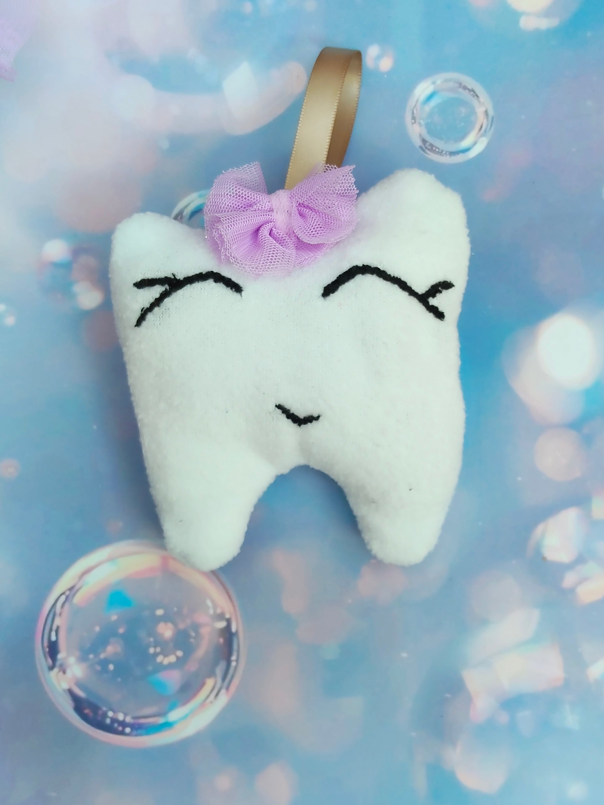 Our original plush tooth pouch. Pop that pearly white in the pouch at the back. Can be hung from the door for ease of the tooth fairy.
